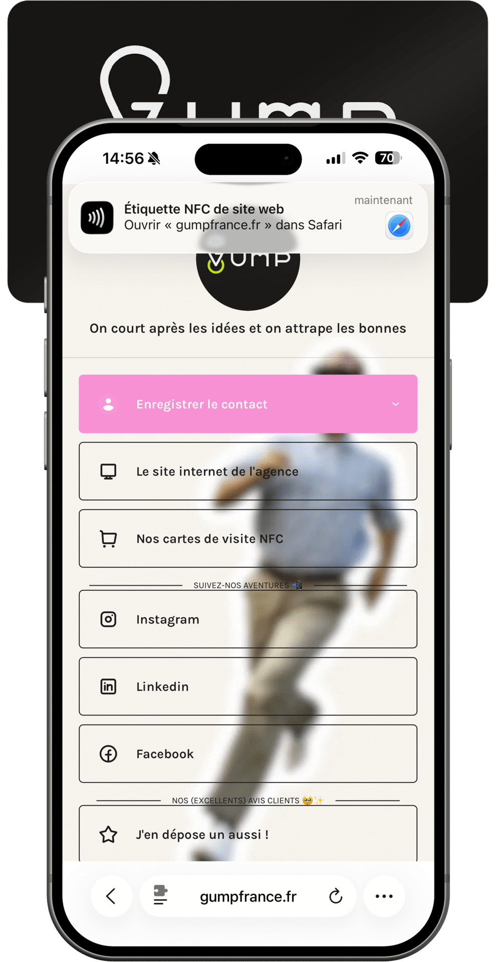 Un grand merci à toute l’équipe Gump pour ma carte de visite NFC qui correspond à 100% à ce que j’avais imaginé et demandé ! Qualité de l’impression, design, utilité…. Tout y est ! Je vous conseille vivement de vous orienter vers Gump pour créer la vôtre.